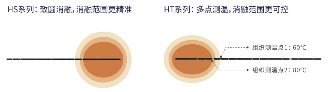 消融针最细至18G(1.3mm)以满足更多临床需求,全针水冷设计帮助减少组织碳化和粘连,HS系列致圆消融有效提升消融范围精准度,HT系列多点测温功能进一步增加消融范围可控度。全数字化系统的海杰亚微波消融系统,还拥有分体式连接线、高端精控蠕动泵以及多种操控模式的创新维度。